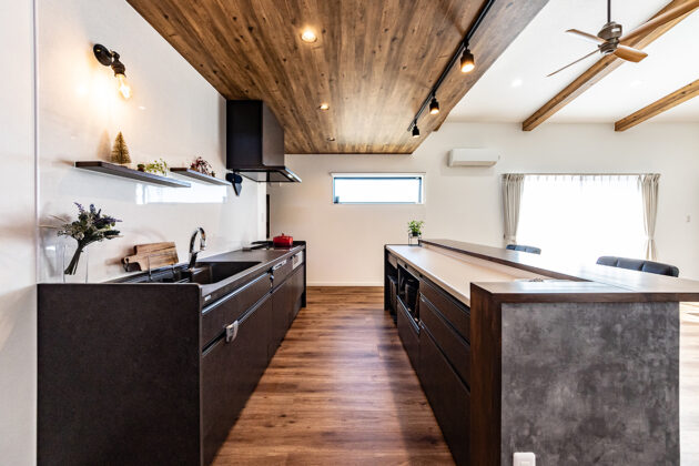 「長く住み続けられる家にしたかった」と奥様が言うように、動線を重視した間取りも考え抜かれています。玄関からすぐに洗面・お風呂場へとつながる造りは、部活を頑張るお子様を意識したもの。洗濯スペースからキッチン、リビングを回遊できる動線は、家事のしやすさもバッチリです。また、H邸は性能面も安心のZEH住宅。省エネ・断熱で光熱費を抑えながら、健康で快適な暮らしを実現します。家族みんなが、楽しく健やかに暮らせる家が完成しました。
