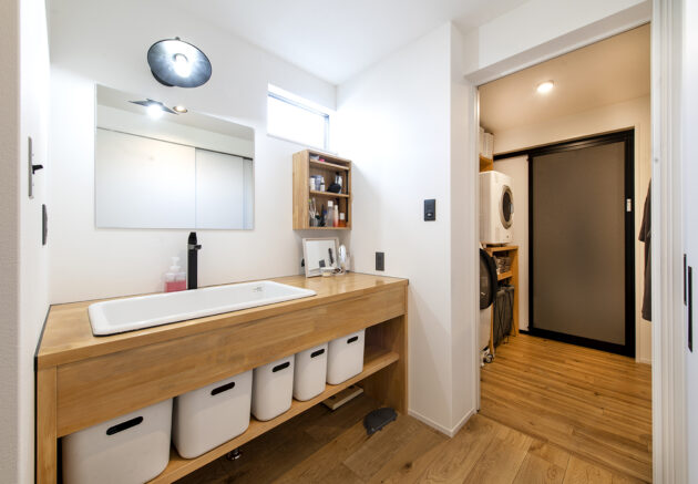 「家族はもちろん、仲間が集まって思い思いに楽しめる家にしたい。そんな気持ちで建てました」と話すのは、K邸のご主人。サーフィンやスケボーが趣味で、この家を手掛けた岩切建設の社長ともサーファー仲間なのだそう。ツートーンの外観からも、どことなくアウトドア好きな印象が漂います。