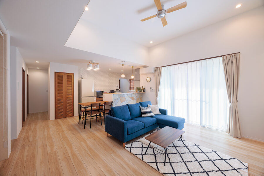 マイホームの耐震性や住宅性能は、できる限り高い水準でかなえたいという思いを抱いていたSさん。複数のビルダーを検討する中で、確かな技術力と高性能住宅に定評のある岩切建設を選びました。カリフォルニアスタイルの外観や広々としたリビング、暮らしやすい動線計画など、住まいのイメージは明確。「私たちのさまざまな要望をしっかりカタチにしてもらえて大満足です。特に開放感のあるリビングがお気に入り」と、ご夫婦は笑顔で語ります。