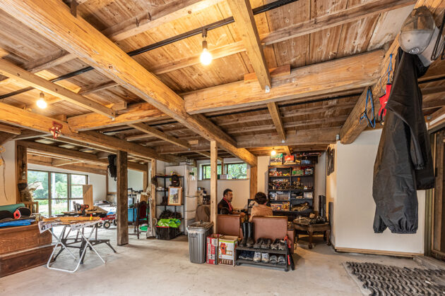 中でも見逃せないのがリビング。それまで天井板で隠れていた梁をダイナミックに現わして吹き抜けの大空間に。床はスギの無垢材、内壁は漆喰を採用。季節を問わずさらりとした空気やぬくもりのある足触りが魅力で、その心地よさを語るご主人の姿は、過去に古民家反対を唱えていたとは思えません。家族の愛情を受け、これからさらに味わいを深めていくM邸です。
