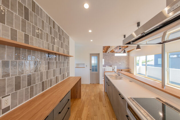内装業に携わるKさん。一度だけ担当した日大建築の「おしゃれなインテリア」が記憶に刻まれていたことが、ビルダー選びの決め手になったと言います。当初から奥様の仕事場を併設する計画があり、家族の日常生活はもちろん、店舗運営もスムーズにできるプランを希望。条件の良い土地探しにもこだわり、アクセスしやすい宮崎市広原の県道沿いに、リラクゼーションサロン『RitA.COCO(リタココ)』を備えた住宅を完成させました。