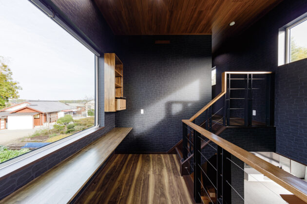 中2階のスタディースペースは、キッチンに立つ奥様からも、リビングに居るご主人からも見える場所。階段の手すりは、視界を邪魔しない太さの番線がきれいに通るように図面を引いてスタイリッシュに仕上げました。気密性が高いとカビが発生しやすいですが、ファースの家は結露を完全に除去。空気清浄機を各部屋に設置するよりクリーンな空気の中で、健康で快適に暮らせる家を提案しました。