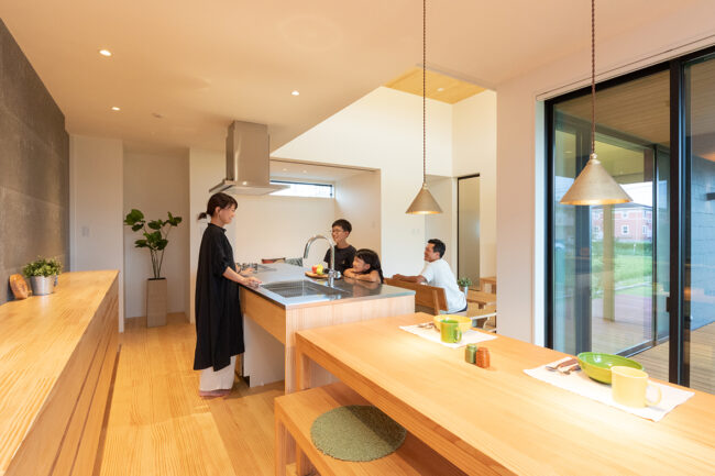 「転勤で五ケ瀬に住んでいたこともあって、木に囲まれるような板天井の家に憧れました」と語るKさん。年間建築棟数を限っていることや会社から無理のない距離で仕事をしていることなどが、山下住宅に関心を持った理由だとか。最後の決め手は、同社のモデルルームを訪れ、すべてが自分たちの好みと一致したことでした。